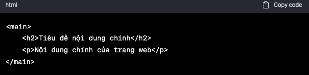 Thay vì sử dụng thẻ "div" để định dạng phần nội dung chính của trang web, bạn có thể sử dụng thẻ "main" như sau: